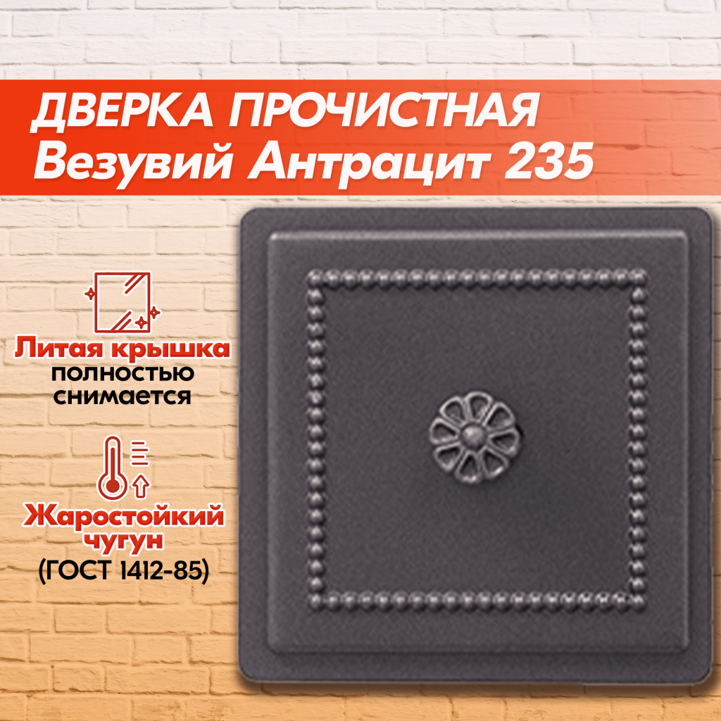 Съёмная крышка из чугунного литья полностью снимается, что упрощает процесс чистки дымоходов.