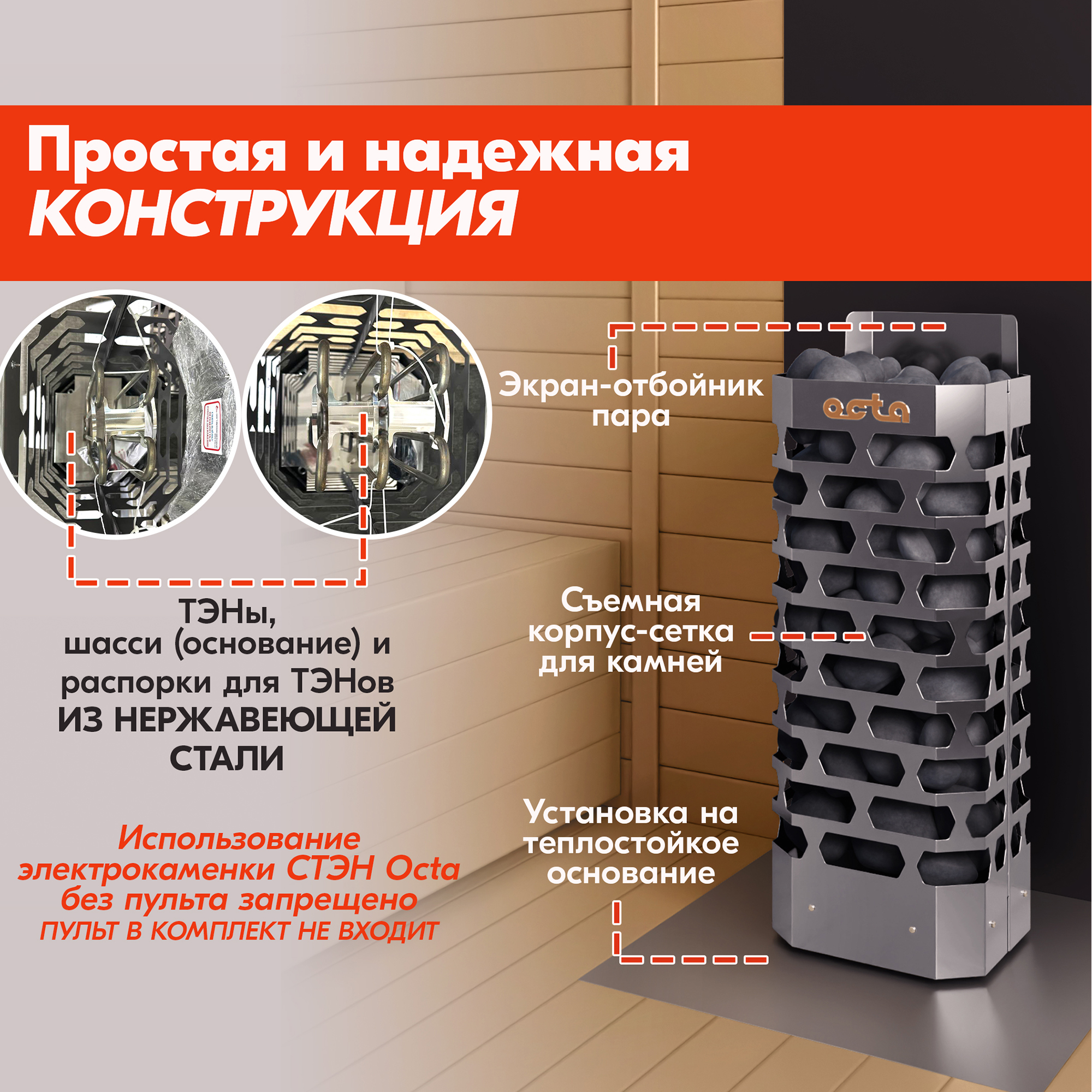 Печи-электрокаменки  СТЭН Octa – 4, -6, -9 предназначены для нагрева воздуха и получения сухого пара в банях и саунах.