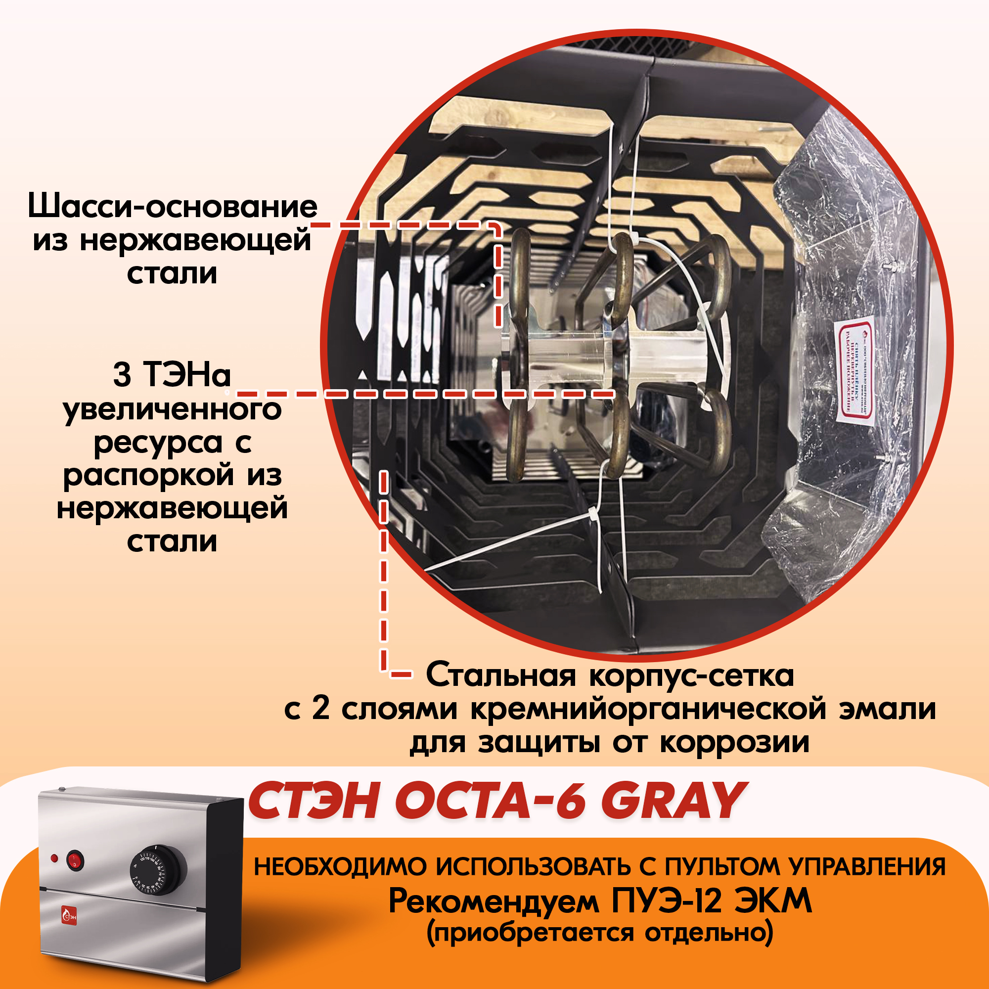 Электрическая каменка СТЭН ЭКМ 6 Octa gray в Пскове | Доставка по России