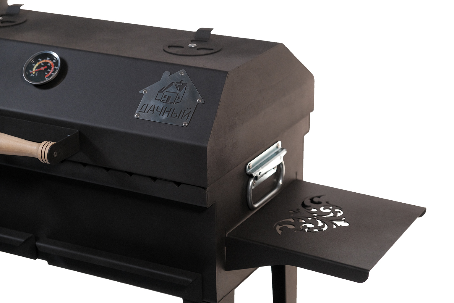 Казан-гриль «Дачный» оборудован специальным термометром для контроля температуры в процессе работы. Регулирование температурного режима можно осуществлять с помощью вентиляционных заслонок.