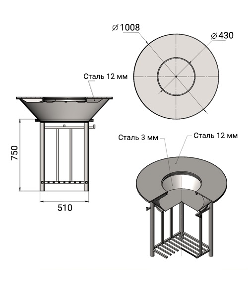 Подставка под казан в комплекте.