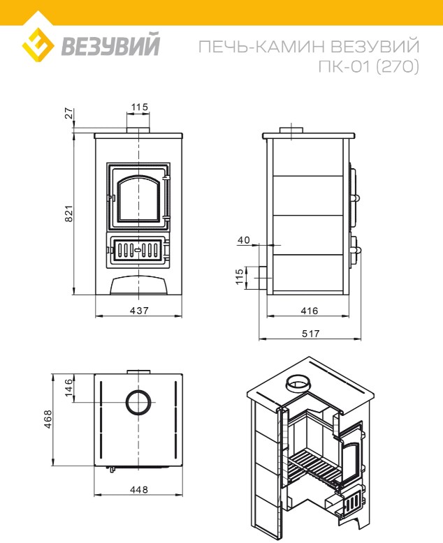 Диаметр дымохода: 115 мм