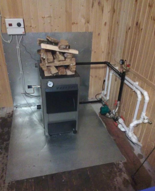 Сварной корпус котла (из стали толщиной 3 мм) имеет рабочее давление в системе отопления - 3 атм.