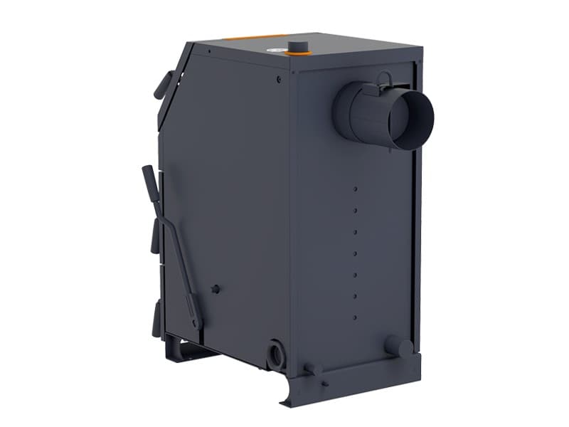 загрузка топлива через наклонную топочную дверцу, закрывающуюся на замок;