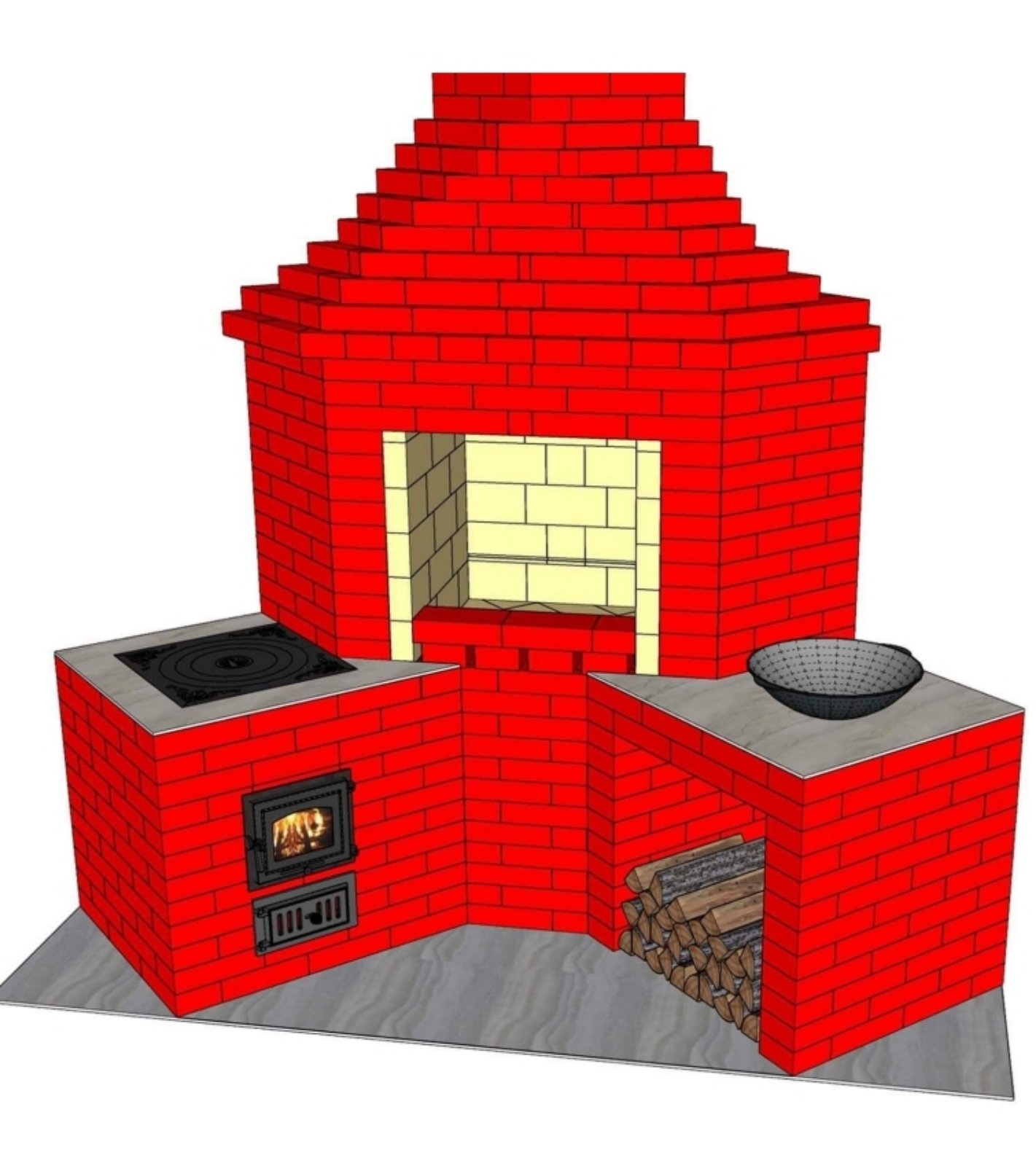 Угловой мангал с печью под казан